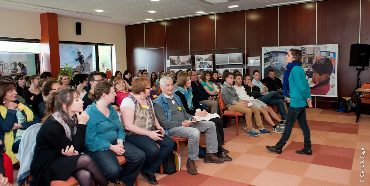 Le travail s'effectue en ateliers de "pairs" (habitants, jeunes, responsables associatifs, professionnels,élus, etc.).